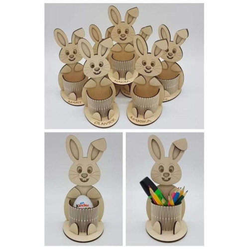 Predstavljamo vam našega čudovitega velikonočnega zajčka, ki ni le ljubka dekoracija, ampak tudi praktičen pomočnik! Ta leseni zajček je popoln za shranjevanje pirhov, svinčnikov ali drugih drobnih zakladov.